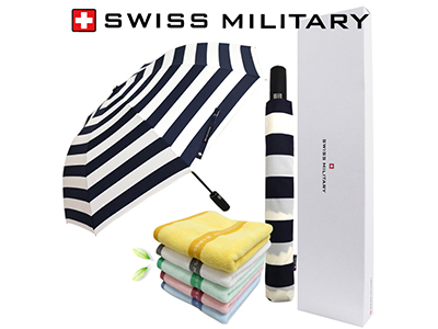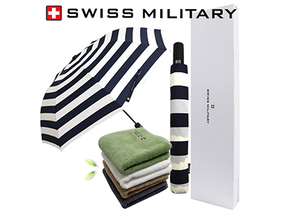 - 스위스밀리터리 3단수동 네이비스트라이프+바스타올+175g선염타올 1P 세트(소)