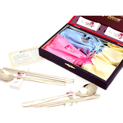 - kt40.키친아트 특산수화 골드티타늄 수저2벌 도자기받침2p