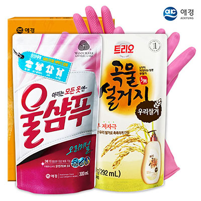- 애경 울샴푸 곡물설거지300리필 고무장갑32cm 3종