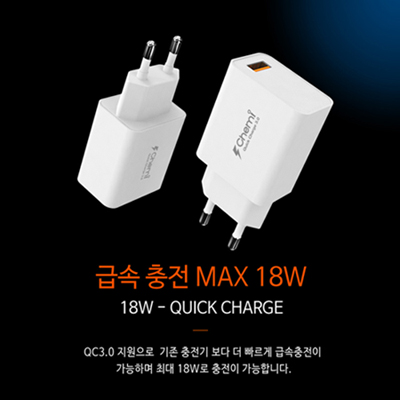 - 케미 QC3.0 USB 1PORT 급속 가정용 충전기