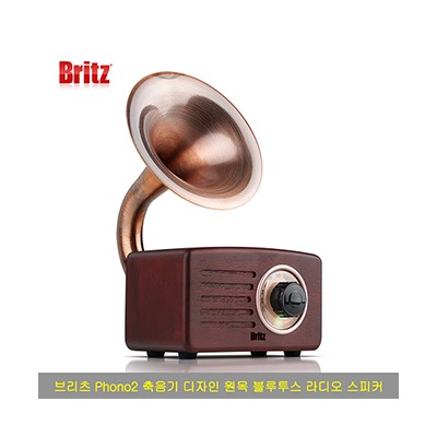 - 브리츠 Phono2 축음기 디자인 원목 블루투스 라디오 스피커