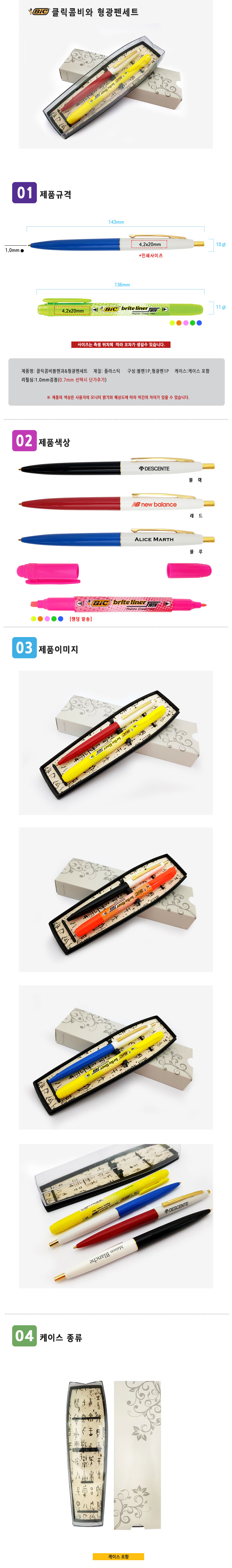 빅클릭골드 볼펜과 형광펜 세트제품입니다.