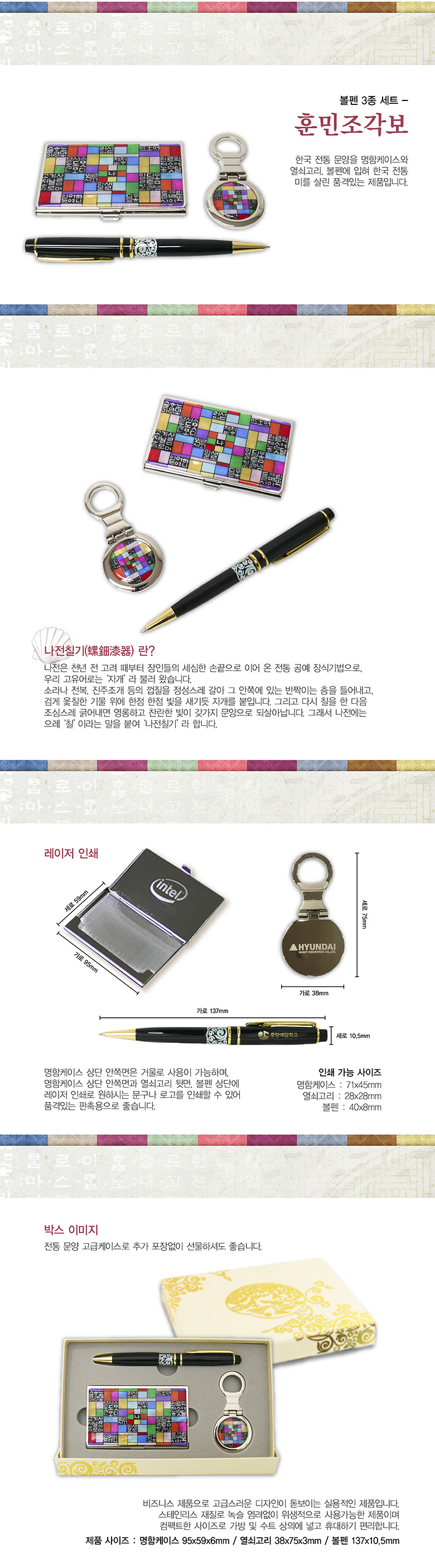 자개금장볼펜3종세트(훈민조각보)