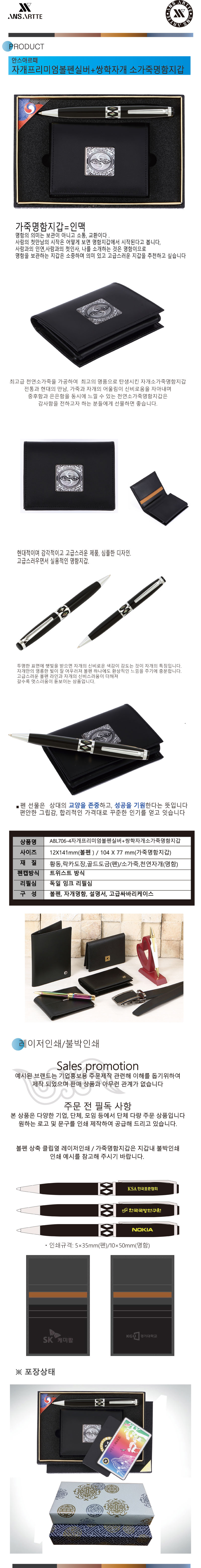자개프리미엄볼펜실버+쌍학자개 소가죽명함지갑