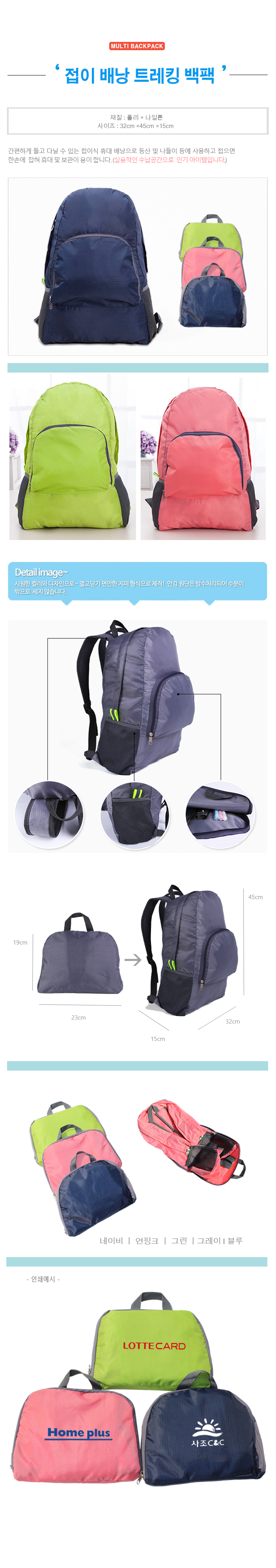 휴대가 간편한 접이식 배낭입니다.