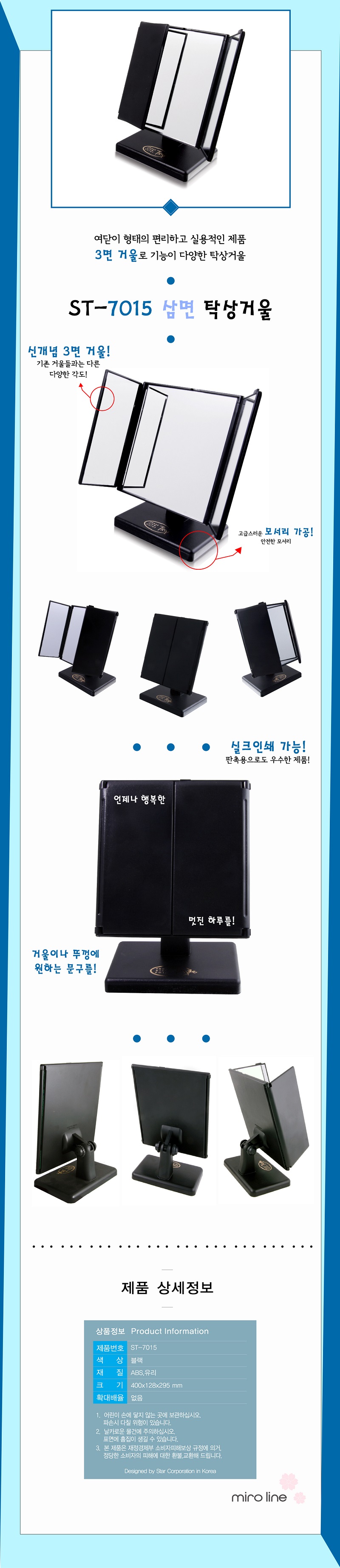 여닫이로 되어있는 3면 탁상거울