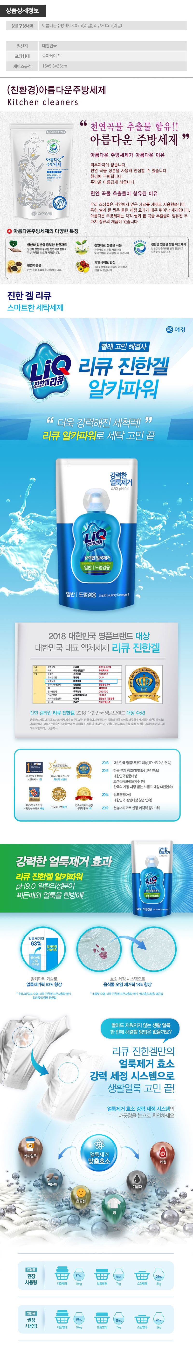 아름다운주방세제(쌀)300ml(리필)/리큐300ml(리필)