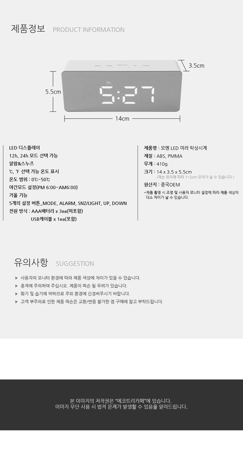 [모멘] LED 미러 탁상시계