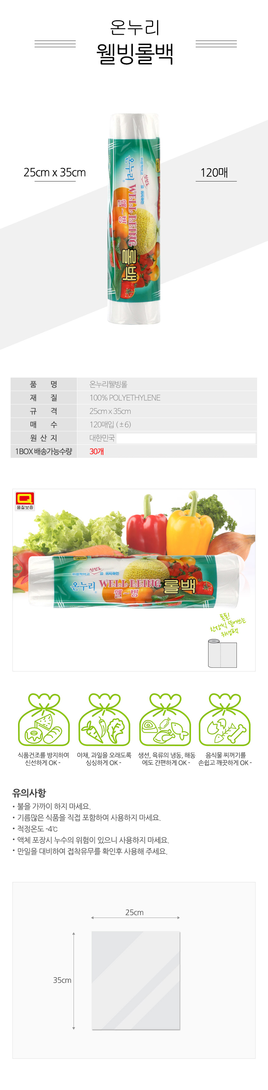 온누리웰빙롤팩120매