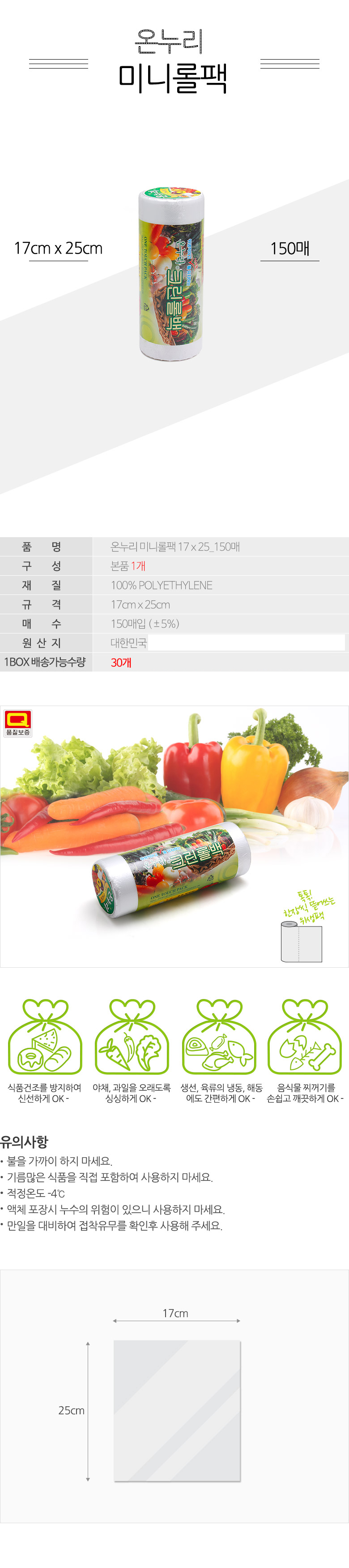온누리미니롤팩 150매