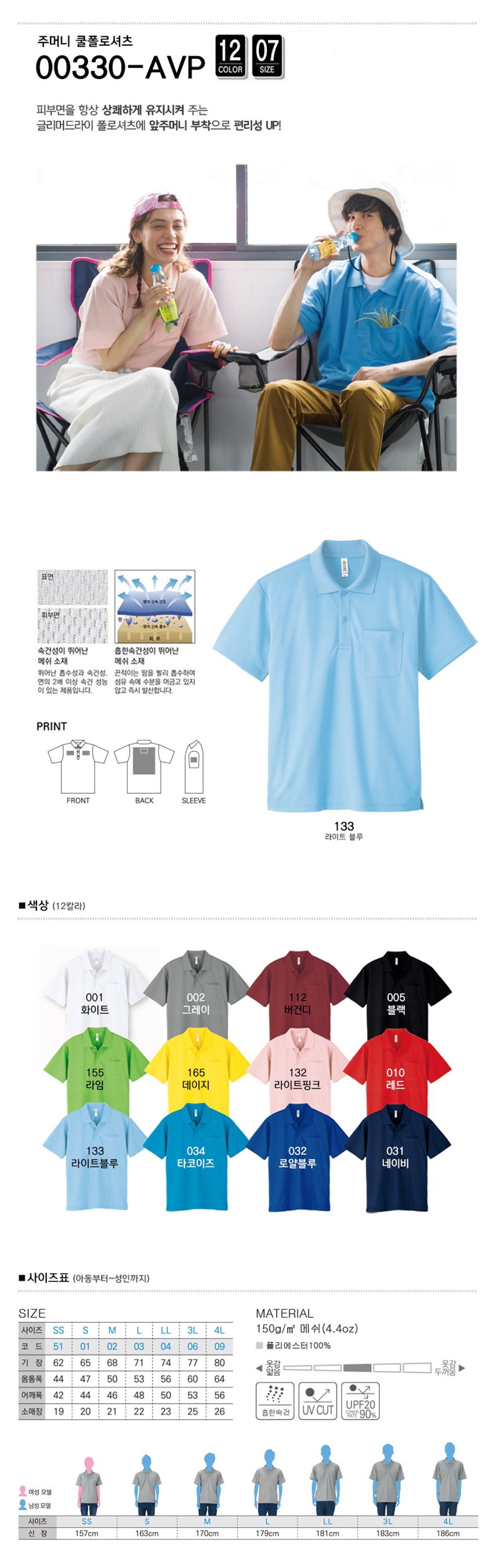 주머니 쿨 폴로셔츠(12칼라)