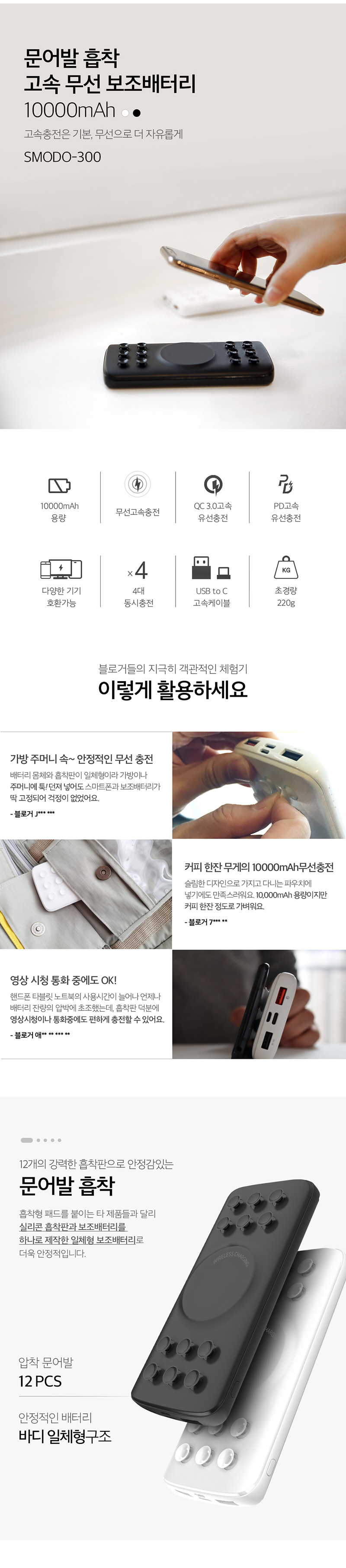 에스모도 흡착식 무선 고속충전 보조배터리 10000mAh SMODO-300