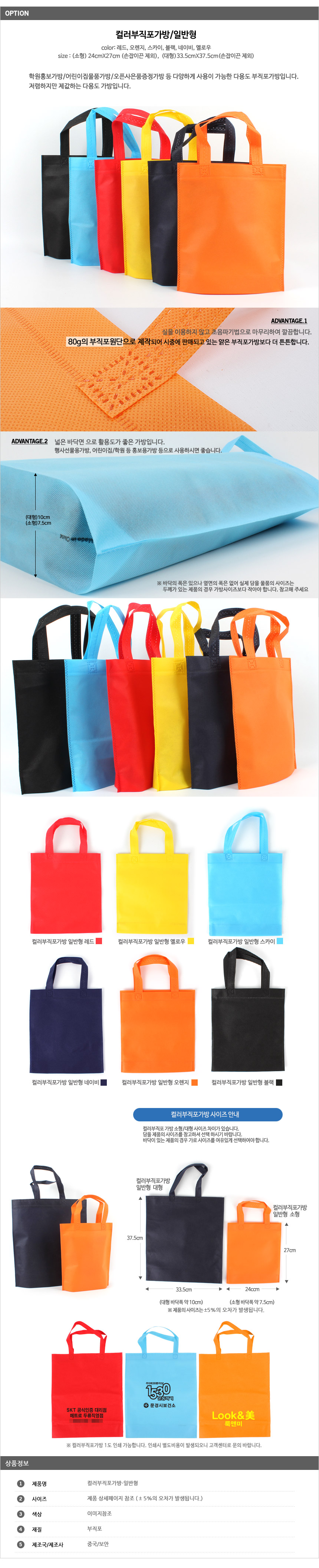 컬러부직포가방 소형