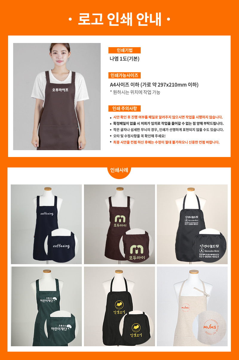 판촉앞치마 단연 1위! 손님 옷 보호용 앞치마, 앞가리개용 입니다.