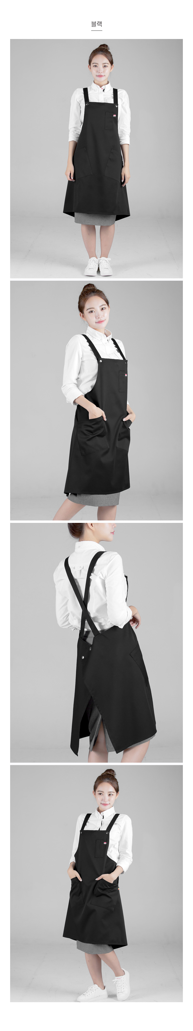 스냅단추로 어깨끈 사이즈 조절이 가능한 다용도 앞치마, 바리스타용,공방,주방,작업실,네일샵,미술용 등으로 다양하게 입을 수 있습니다.