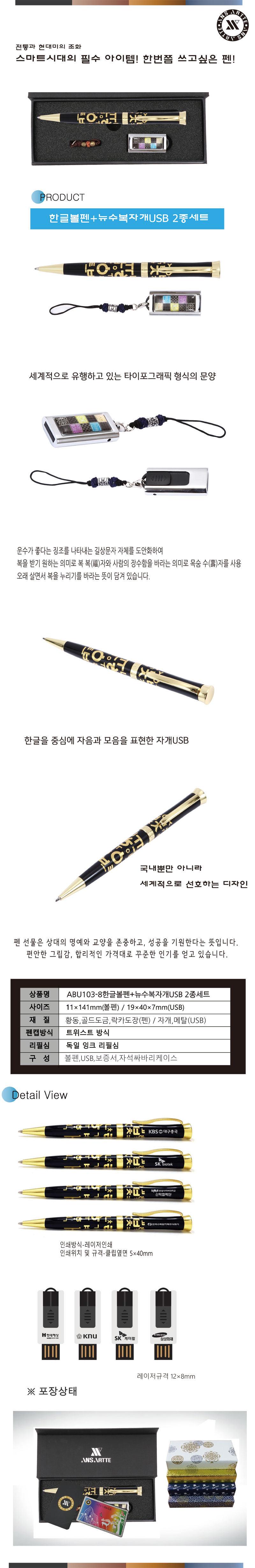 한글볼펜+뉴수복자개USB(8GB~64GB)