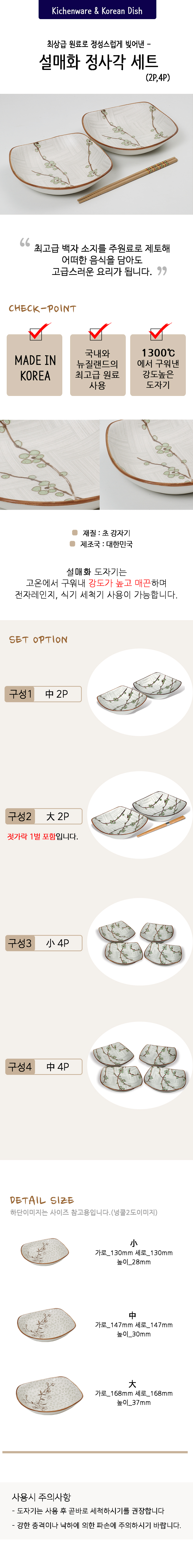 설매화 정사각 2P세트(中 大)