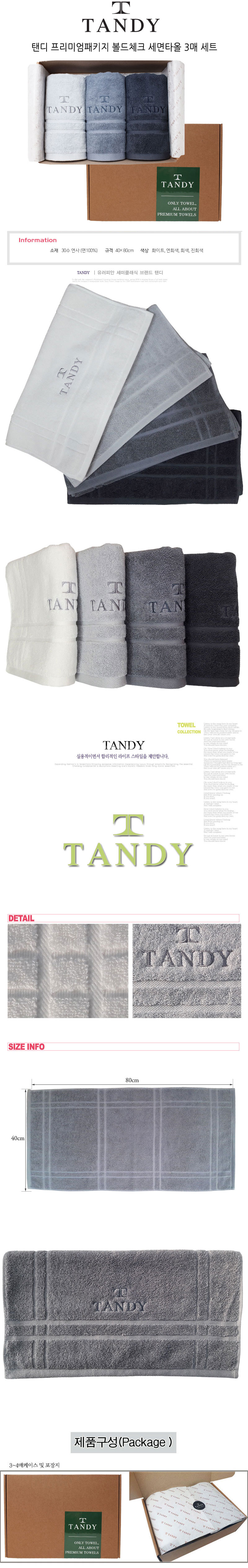 탠디 프리미엄패키지 볼드체크 세면타올 3매세트