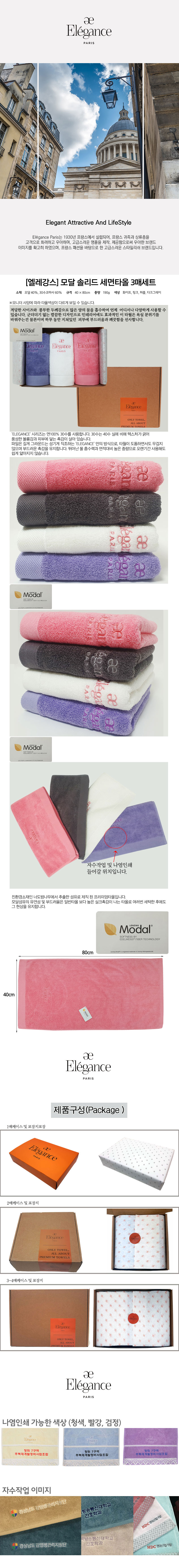 엘레강스 모달 솔리드 세면타올 3매 세트