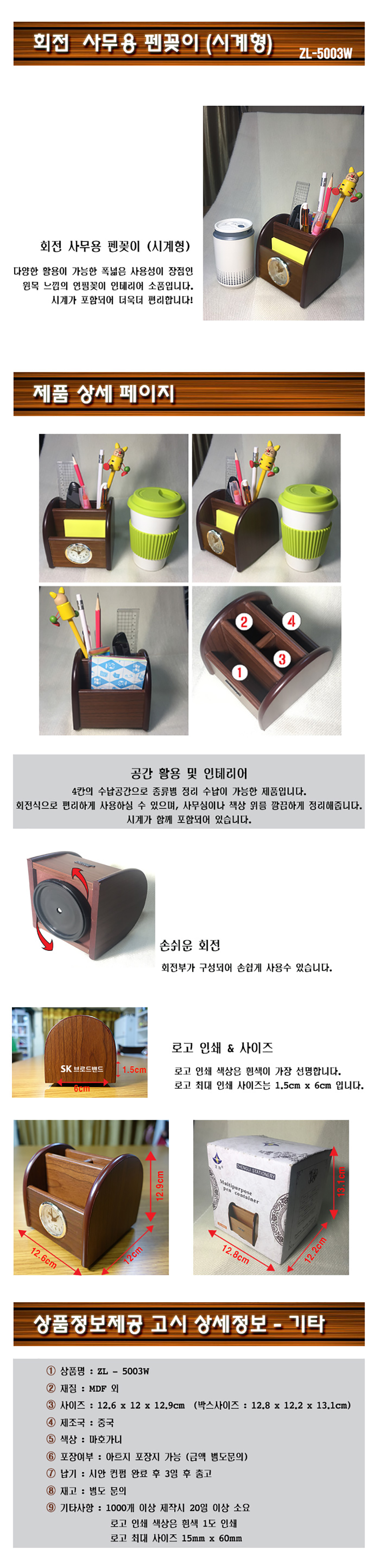 4칸의 수납공간으로 종류별 정리수납이 가능한 회전식 연필꽂이
