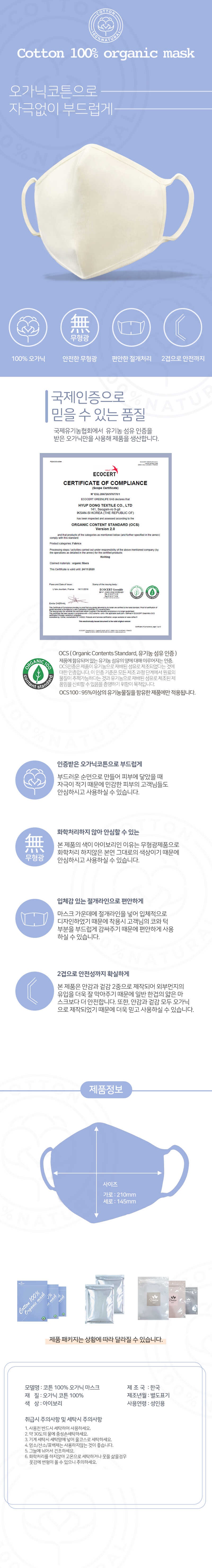 유기농100% 오가닉 코튼 마스크