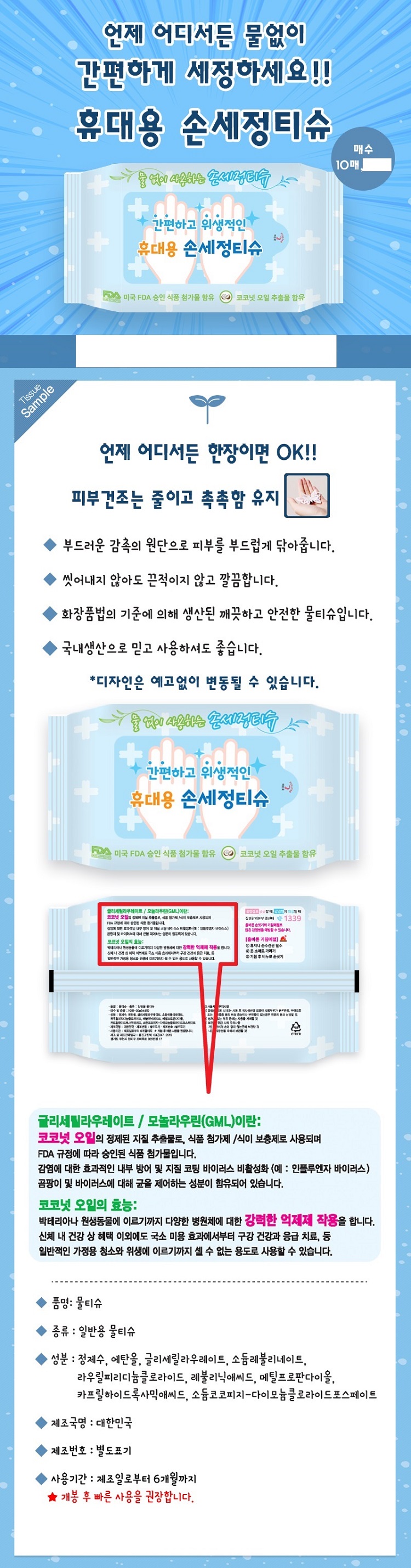 손세정물티슈 10매