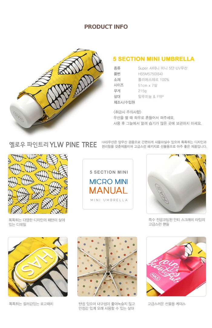 [HAS] 헤즈 5단 미니 UV우산_HS5M5750(64)