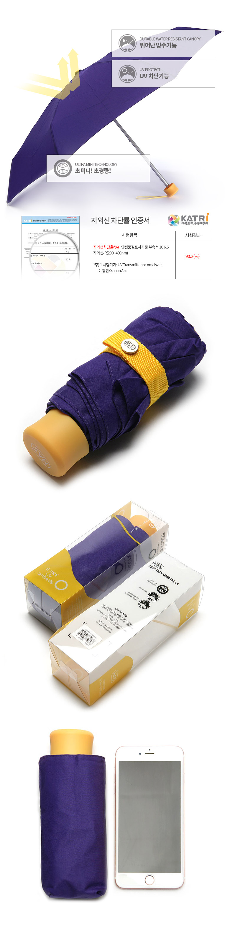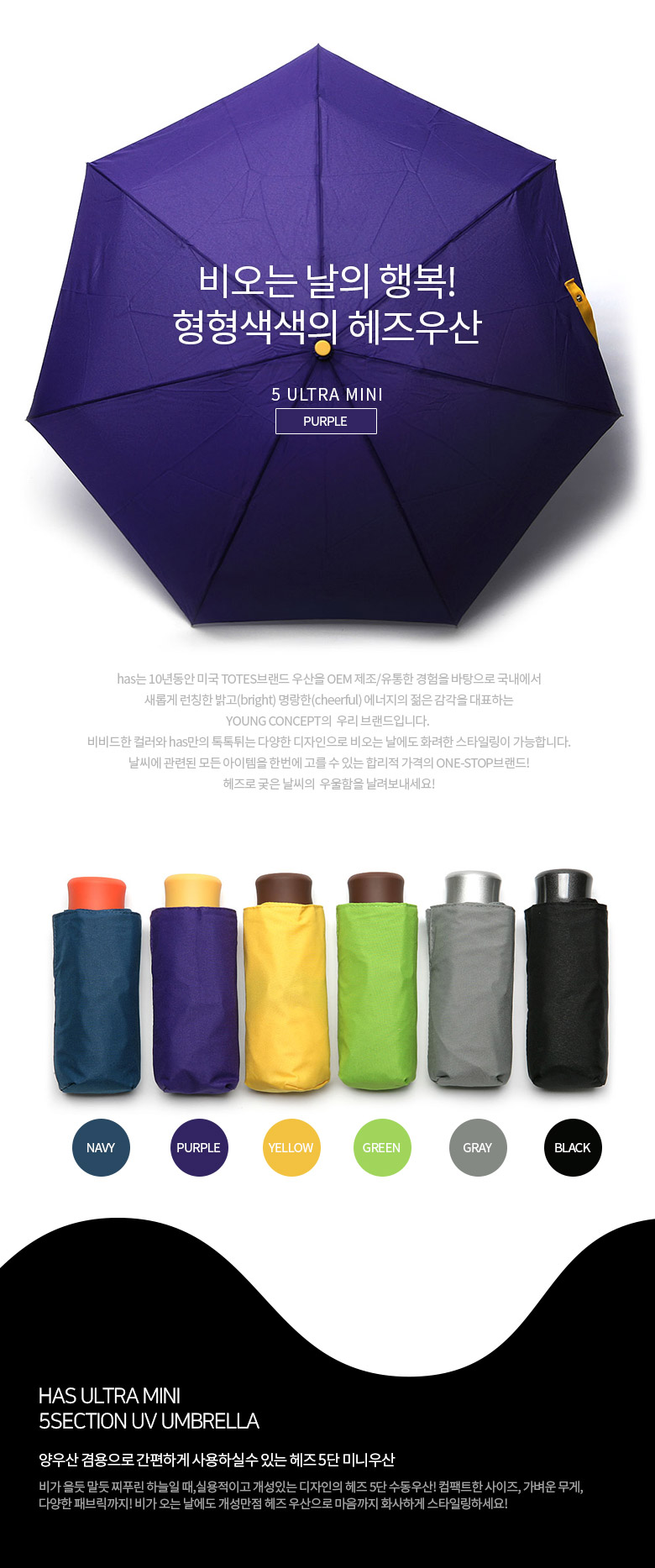 [HAS] 헤즈 5단 미니 UV우산_HS5M5750(PP)