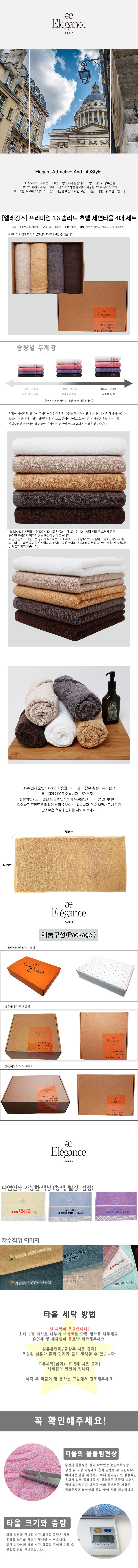 엘레강스 프리미엄 1.6 솔리드 호텔 세면타올 4매세트