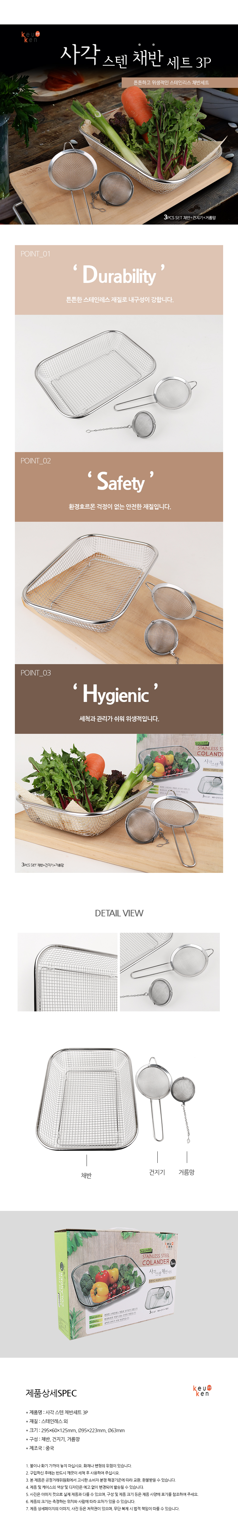 쿠켄 사각 스텐 채반 3P 세트