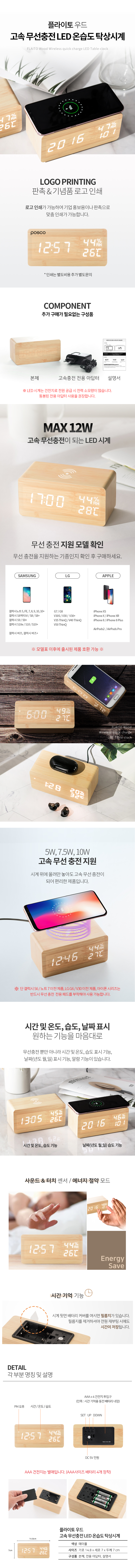 플라이토 우드 고속 무선충전 온습도 LED 탁상시계 JS-i14