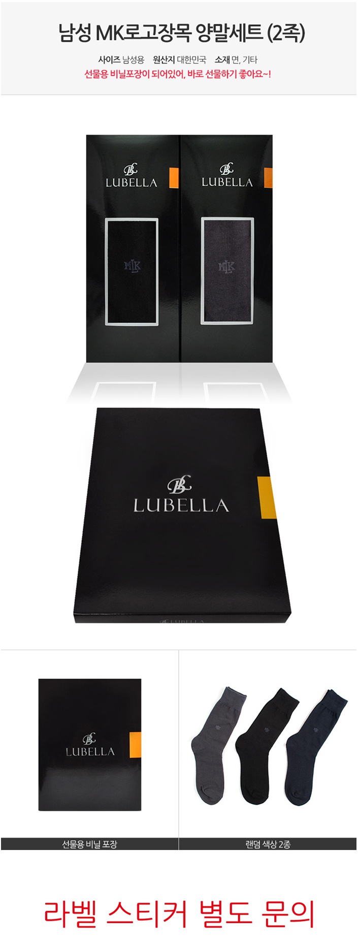루벨라/남성MK로고장목/선물세트2족/남성양말 장목