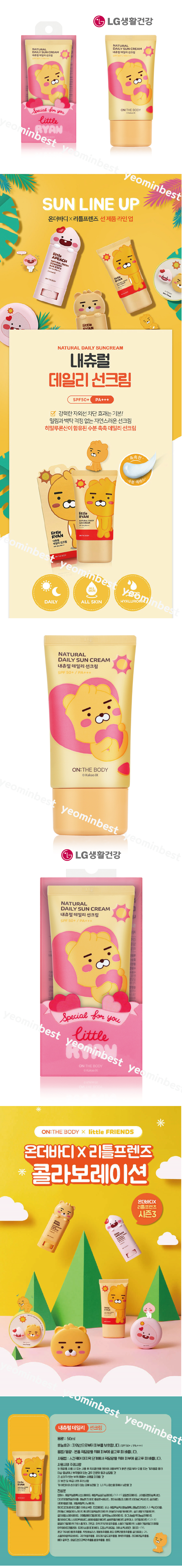 • ★ 최근생산분 출하예정! 카카오 온더바디 내츄럴 데일리 선크림 라이언 50g SPF50+/PA+++ ★ 칼라스티커부착가능 / 고급선물포장가능