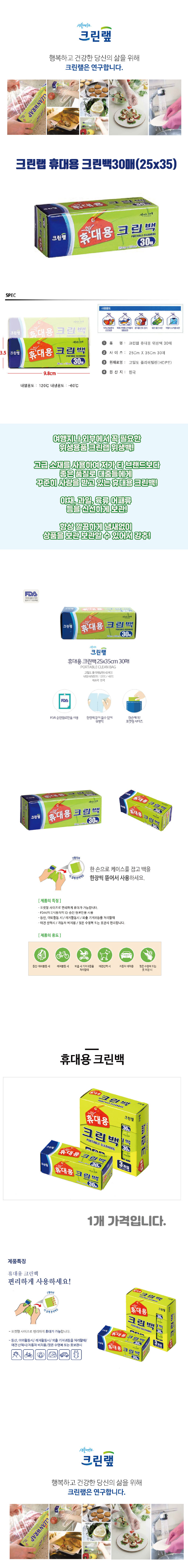 포켓용 여행필수품! 크린랩 휴대용 크린백30매(25x35)