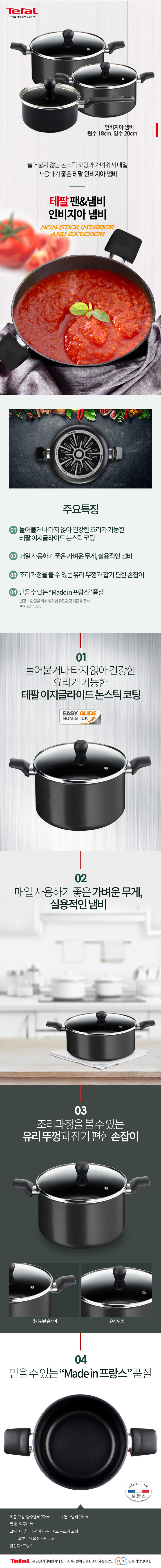 [테팔] 인비지아 냄비 편수 18cm+양수 20cm