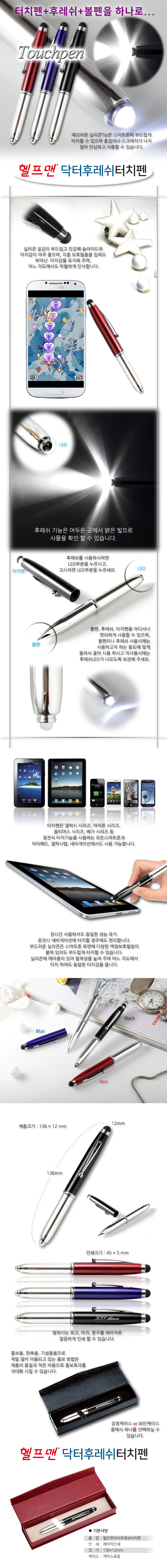 헬프맨 닥터후레쉬터치펜(볼펜+터치펜+후레쉬)