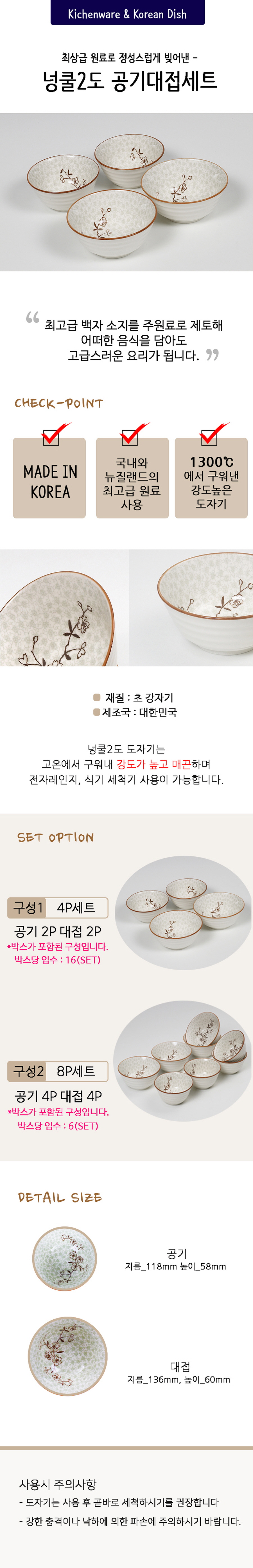 • 공기 Size : 118Øx58(H)mm, 대접 Size : 136ØX60(H)mm