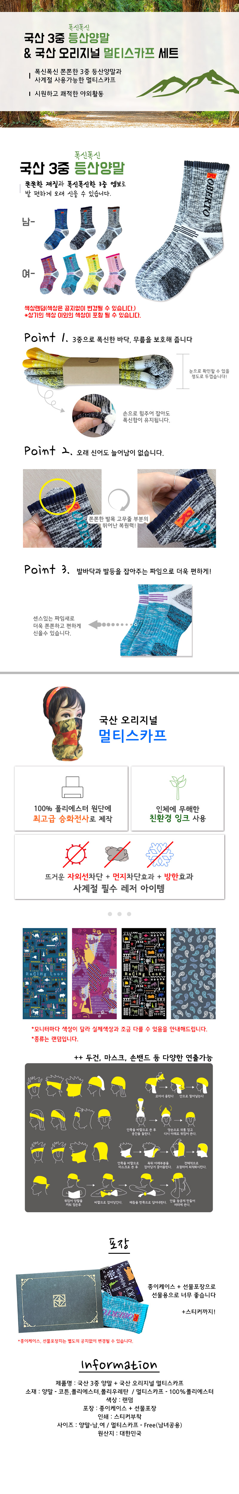 국산 3중 등산양말 + 멀티스카프 세트