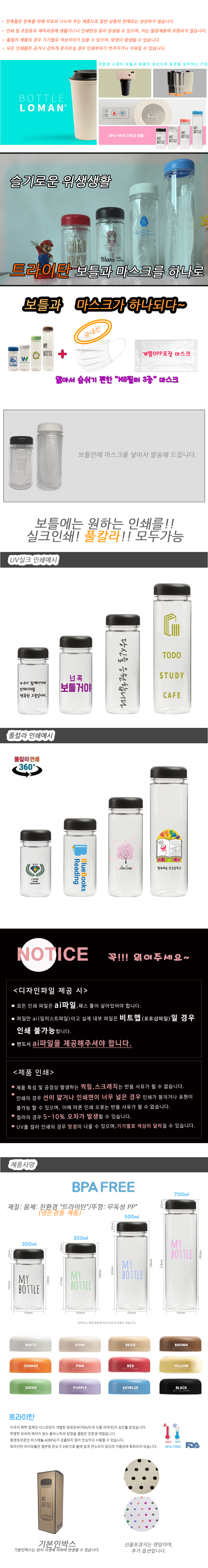 보틀과 마스크(일회용) 세트제품입니다.