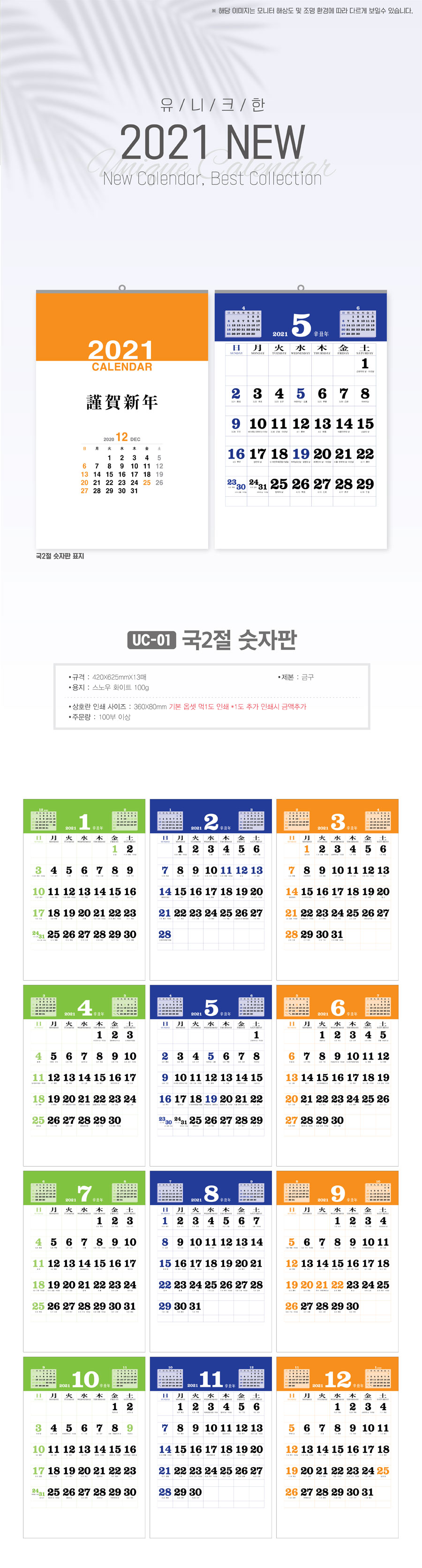 국2절 숫자판 (UC-01) 달력 캘린더