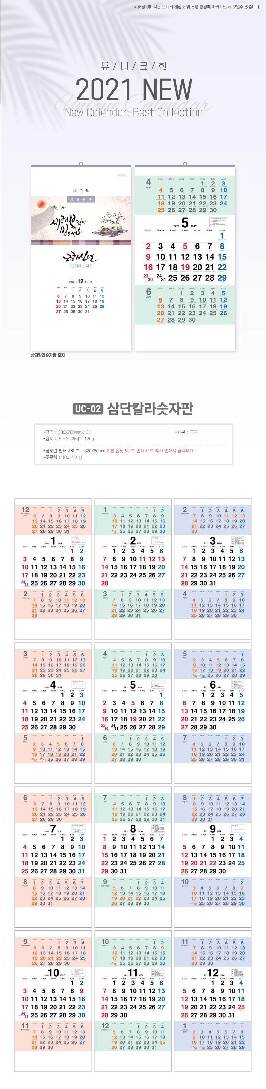 삼단칼라숫자판 (UC-02) 달력 캘린더