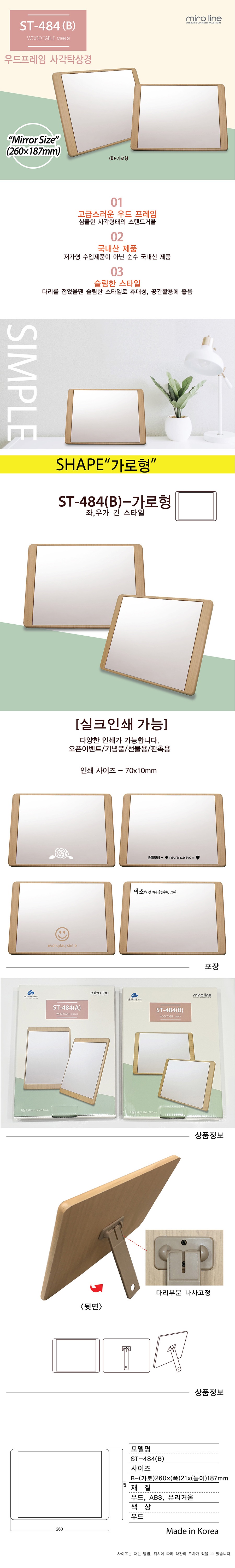 484B-우드프레임 사각탁상거울(가로형)