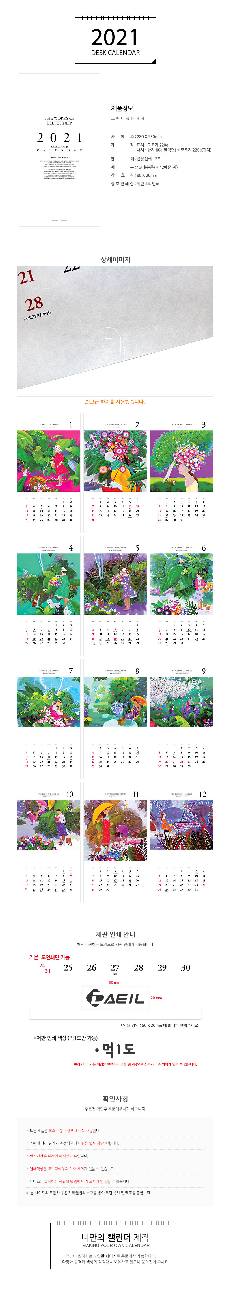 한지벽걸이달력 그림이있는아침 캘린더 카렌다