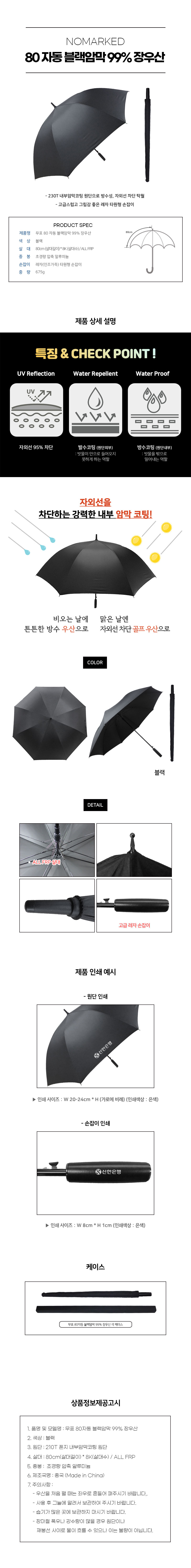 [무표] 80자동 블랙암막 99% 장우산