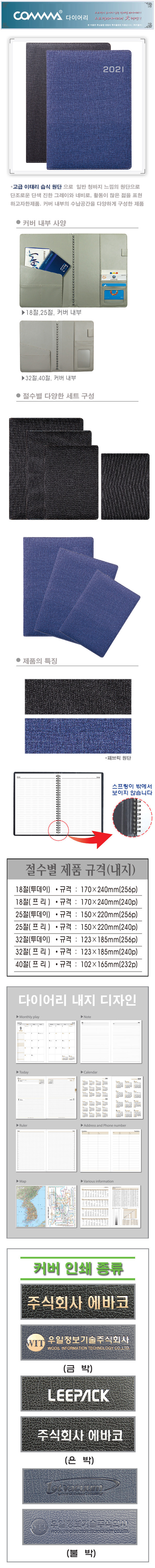 32절 패브릭 곤색,검정 스프링 다이어리 프리(18절,25절,32절,40절,투데이)