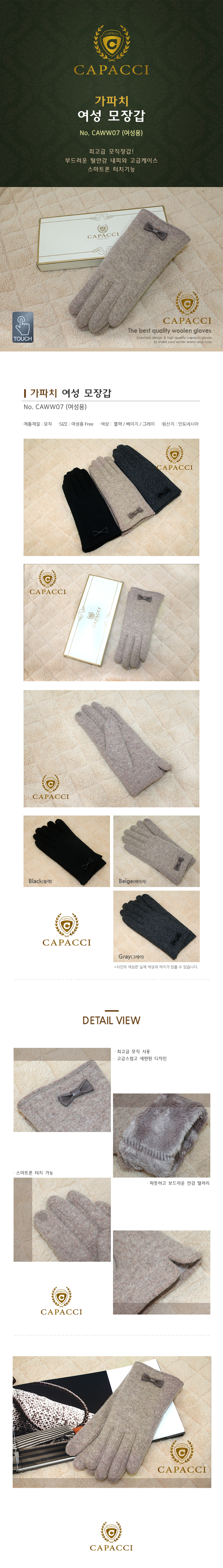 가파치 고급 여성 모직장갑