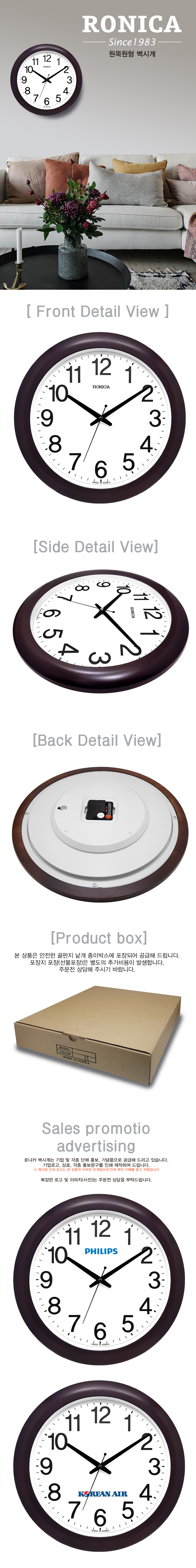 로니카 우드엔틱 정통형 무소음벽시계 R380W