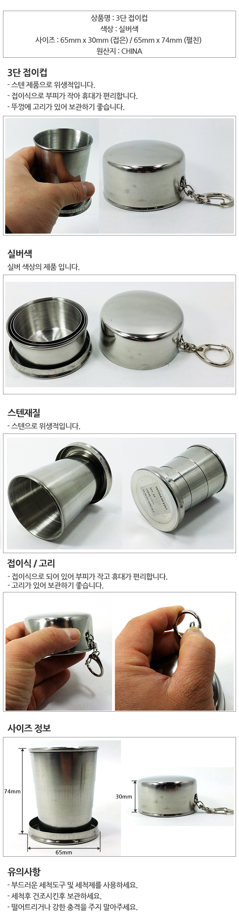 3단 요술 접이식 스텐컵