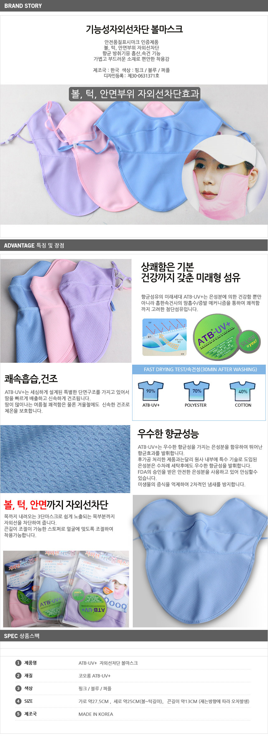 국산 기능성자외선차단 볼마스크