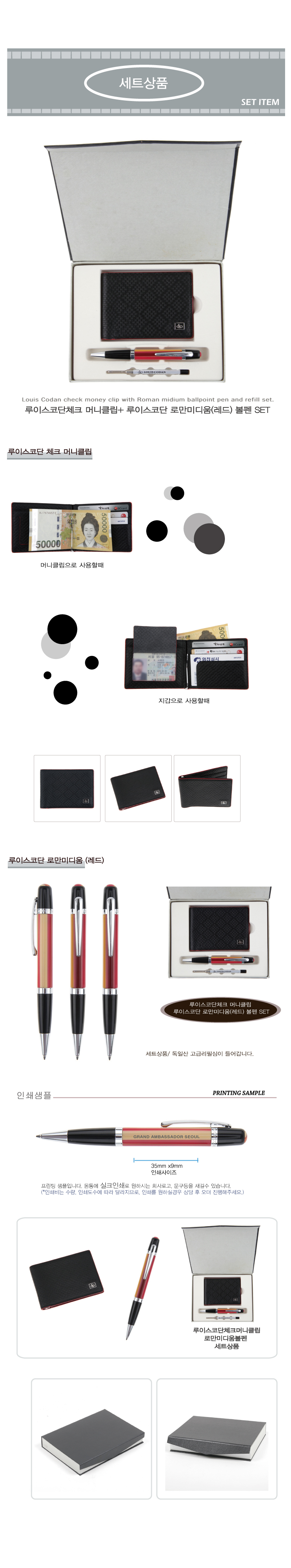 루이스코단체크머니클립+로만미디움(레드)SET